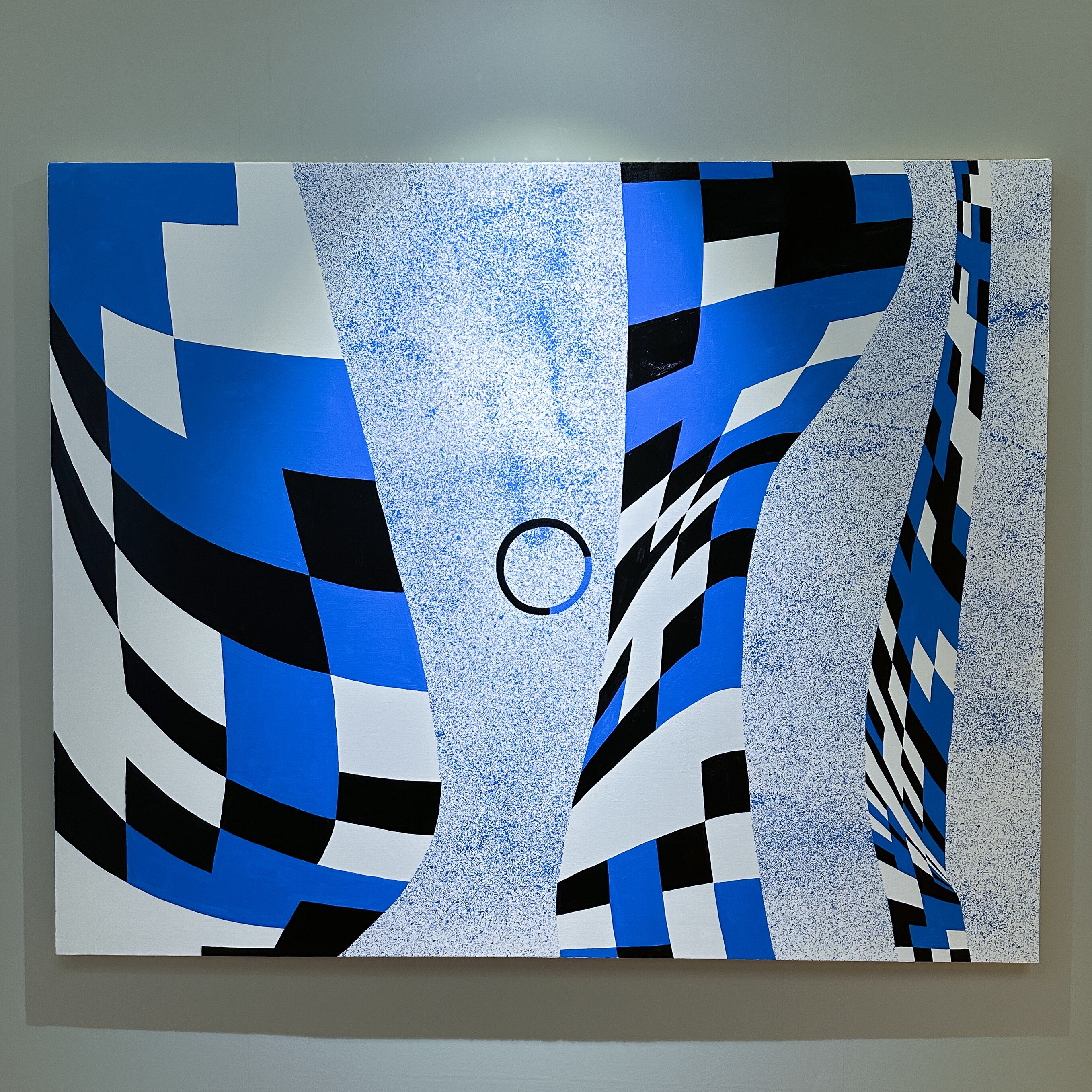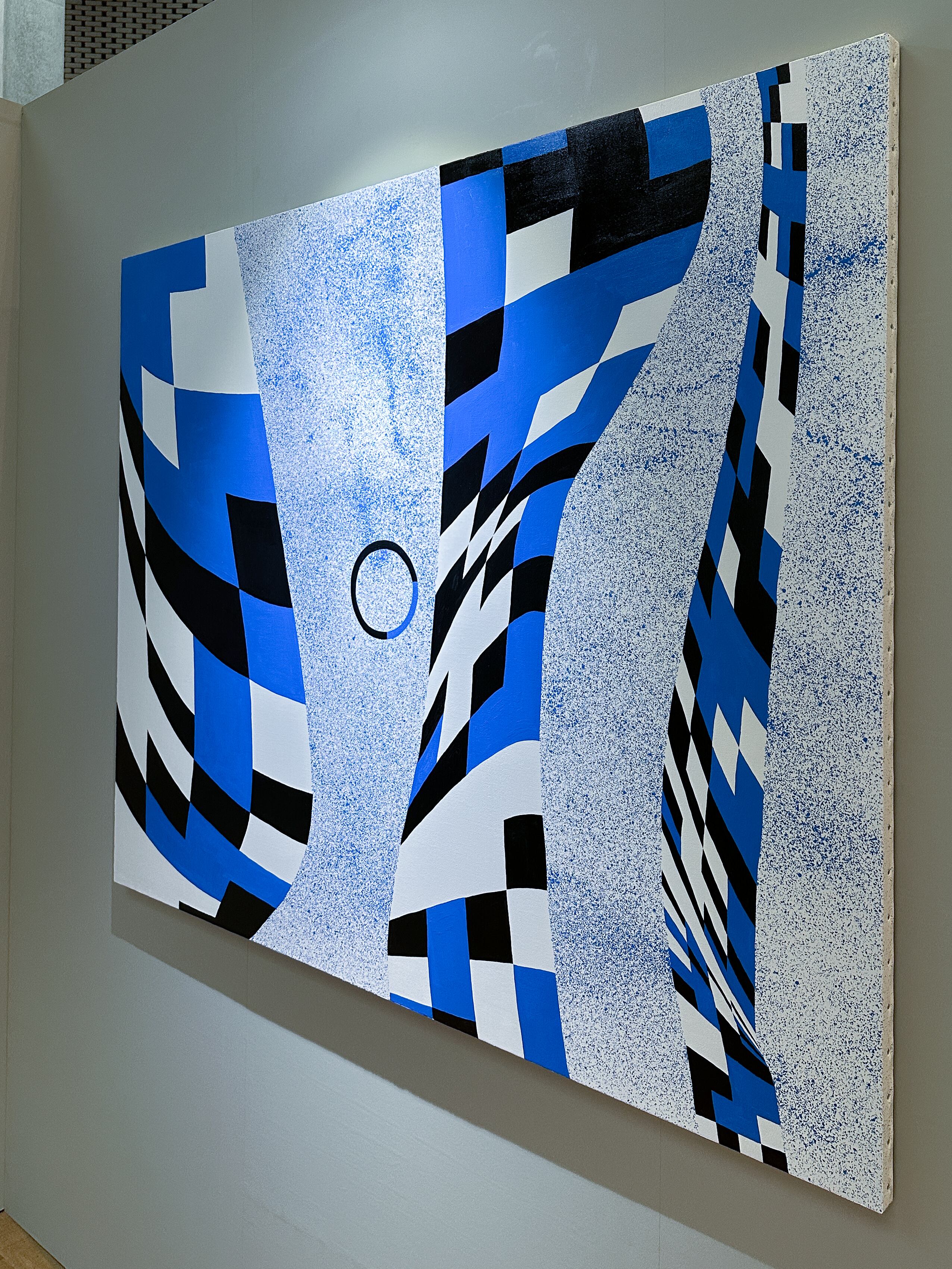 本作は、プロンプトを入力してから画像が生成されるまでの「敵対的生成ネットワーク(GAN)」のプロセスを可視化したペインティングです。