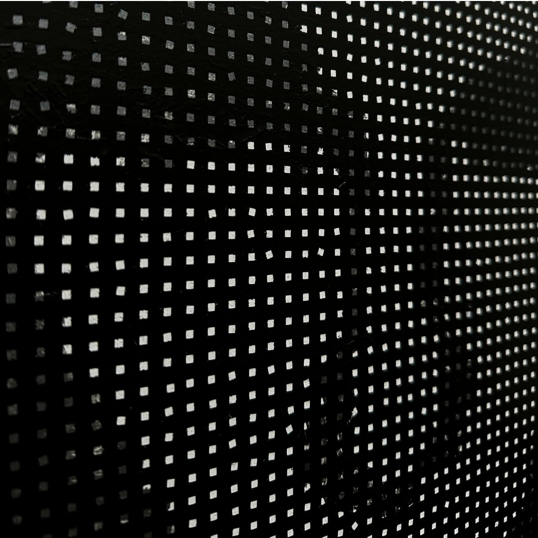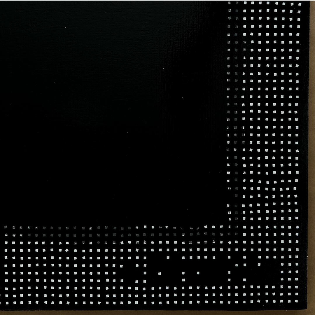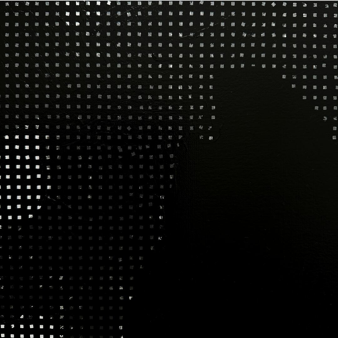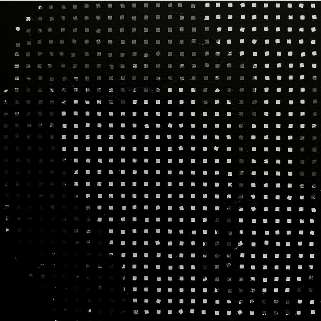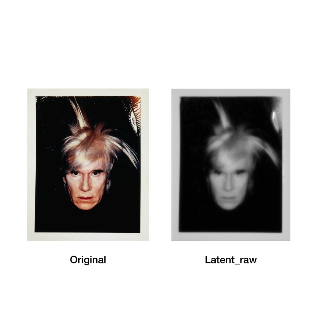 アンディ・ウォーホルのポートレートから、AIが認識した特徴量(latent)をモチーフに、再構成したペインティング。ウォーホルは芸術を表層へと還元しました。現在、AIもまた、膨大な計算によって世界を表層的に処理しています。言葉や概念でさえ視覚的イメージへと変換され、あらゆるものが網膜化していく現代。本作は、その過度な表層性をウォーホルの肖像と重ね合わせ、スクリーンのような絵画として描きました。