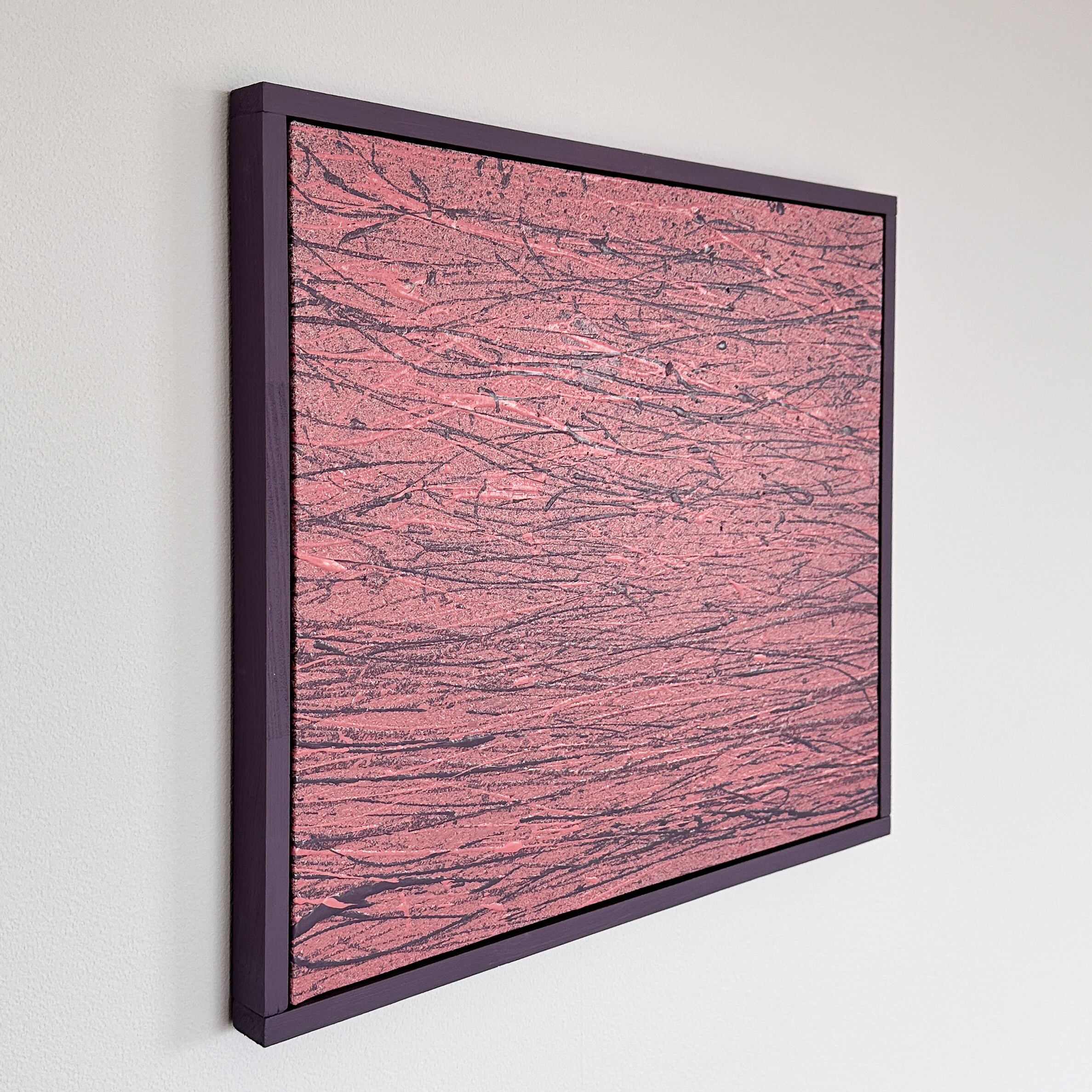 額装: 作品の物質感を引き立てるため、シンプルな木製の仮枠で周囲を囲っております。届いてすぐにそのまま飾っていただける仕様です。