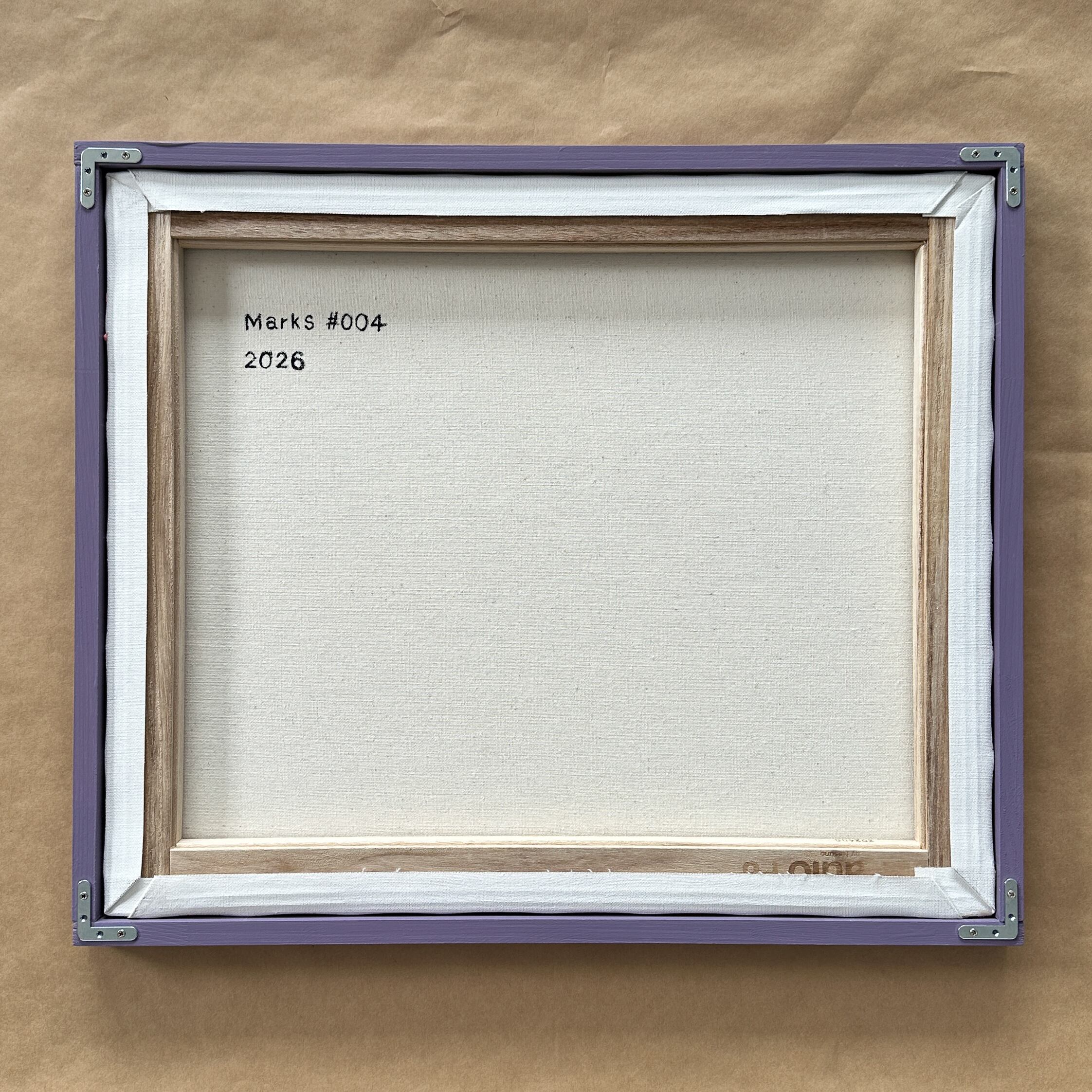 「Marks」は、キャンバスに残す筆跡や絵の具の痕跡から生まれるシリーズです。色の重なりや質感、制作のリズムをそのまま画面に残しています。特定の意味を持たせるのではなく、空間にさりげないアクセントを生む抽象作品として制作しました。