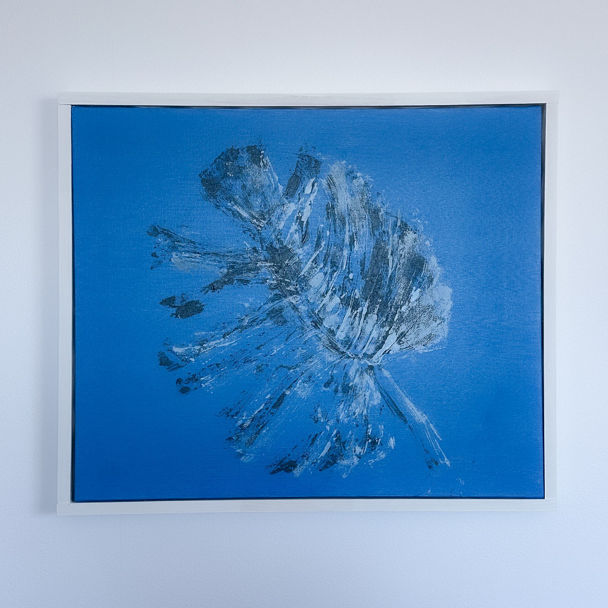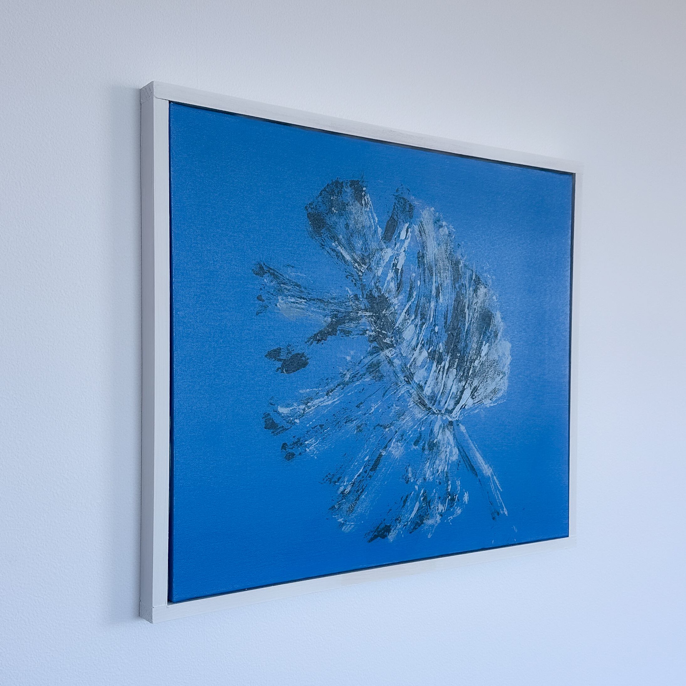 額装: 作品の物質感を引き立てるため、シンプルな木製の仮枠で周囲を囲っております。届いてすぐにそのまま飾っていただける仕様です。