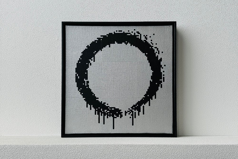 ※本作は、シルバーの背景にブラックのドットで描かれた円相の作品 Edition 2 です