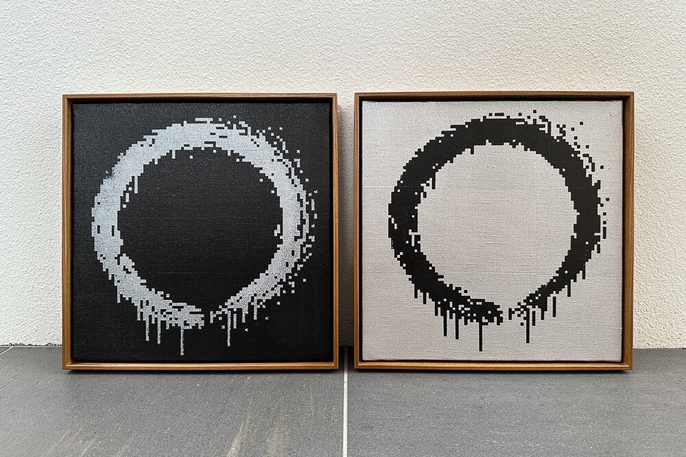 ※本作は、ブラックの背景にシルバーのドットで描かれた円相の作品 Edition 3 です